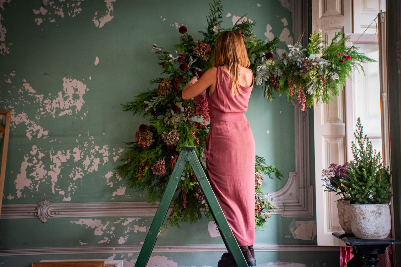 Abrimos as portadas ao Natal. A uma experiência envolvente numa instalação floral que evoca uma peça que vive entre a árvore de Natal e a coroa tradicional. Uma celebração dinâmica, capaz de envolver o espaço com um ambiente natalício subtil e mágico. Deixamos o convite a uma viagem passo a passo, uma experiência sensorial, escultórica …