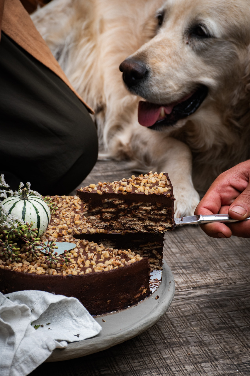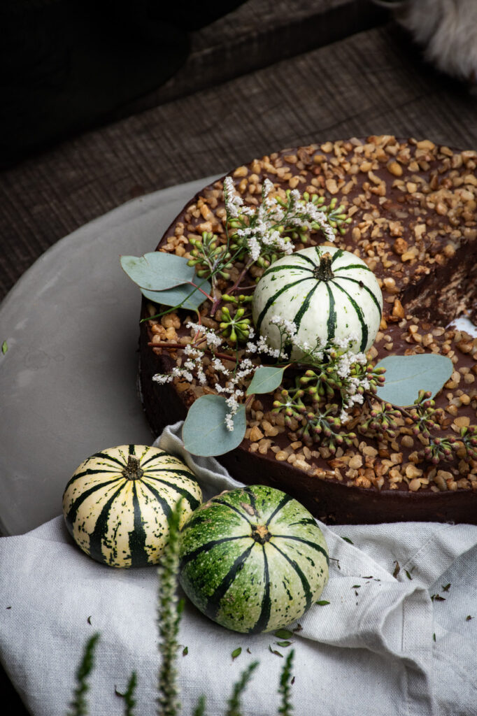E porque é de tempo e dedicação que nos fala esta época, não conseguimos resistir a acrescentar uns detalhes ao nosso Bolo Vegan de Bolacha, Chocolate e Noz antes de cortar umas fatias generosas e de o saborear de pernas à chinês em boa companhia