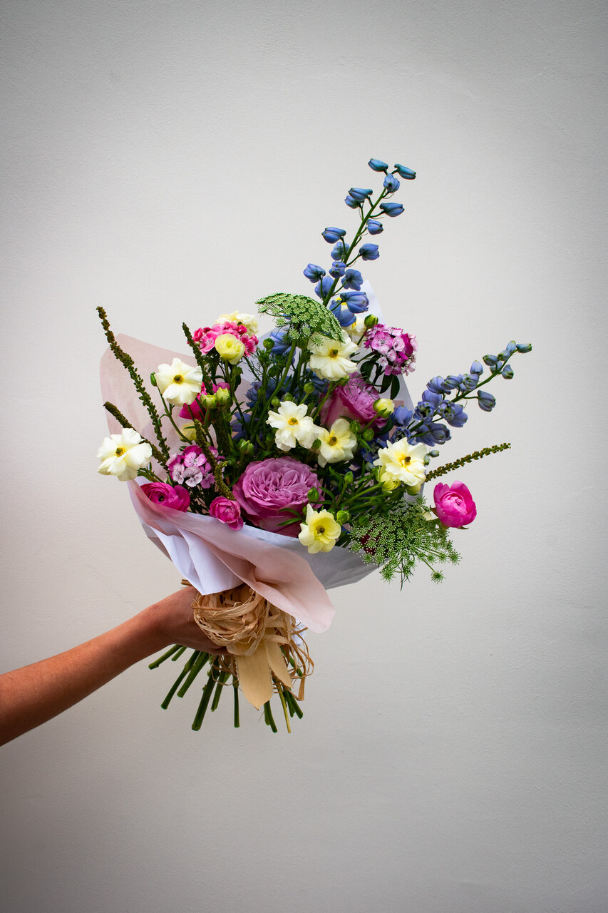 Ramo de Delphinium, Rosas Garden, Cravinas, Ranunculus butterfly, Ammі e Ranunculus